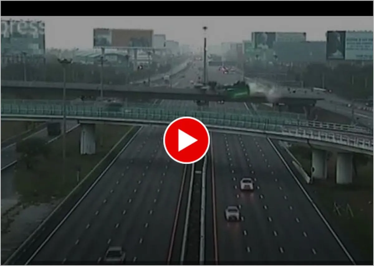 ببینید | سقوط تریلی از روی پل وسط جاده !