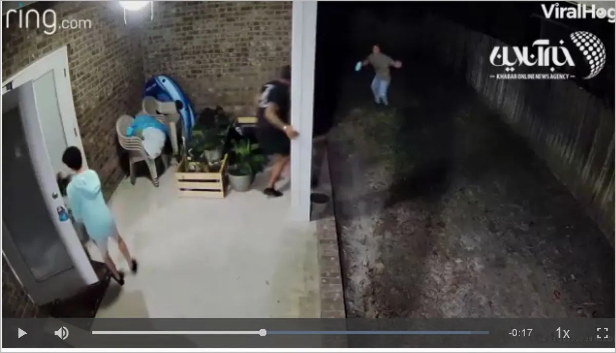 ویدیویی از یک خرس که با حضورش در حیاط خانه ای ترس به جان ساکنان انداخت با فریادهای عجیب یک مرد پا به فرار گذاشت را ببینید.