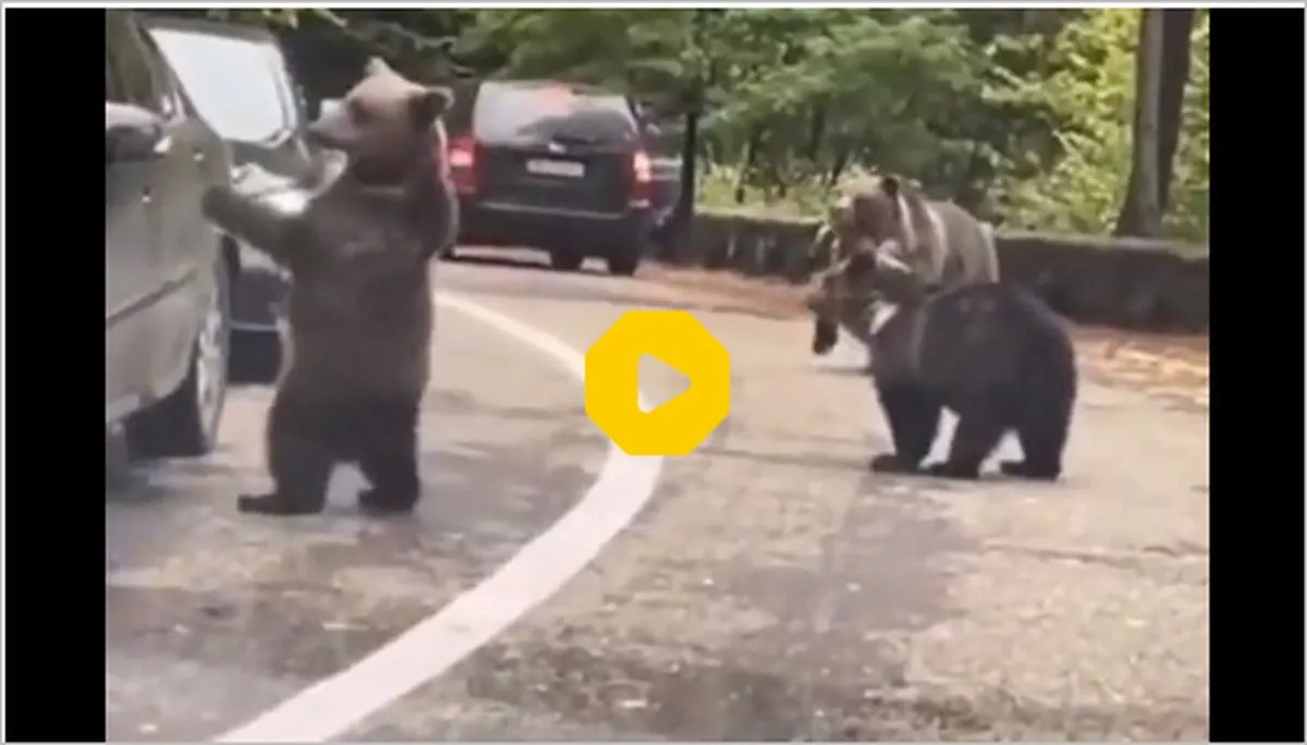 حال و احوال‌پرسی بامزه یک خرس جوان با راننده یک خودرو را در این ویدیو ببینید.
