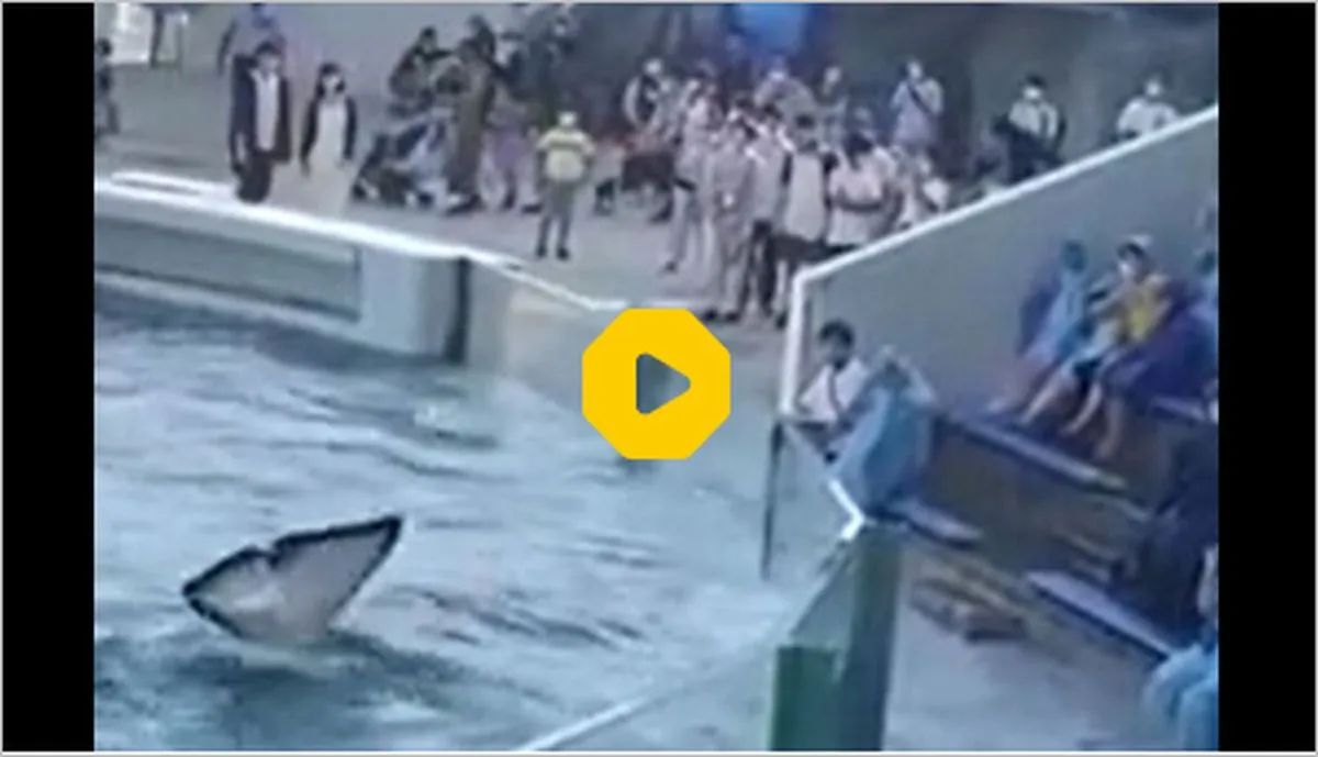 ویدیویی جالب از حرکت دیدنی یک نهنگ در باغ وحش که و خیس کردن گسترده مردم را ببینید.