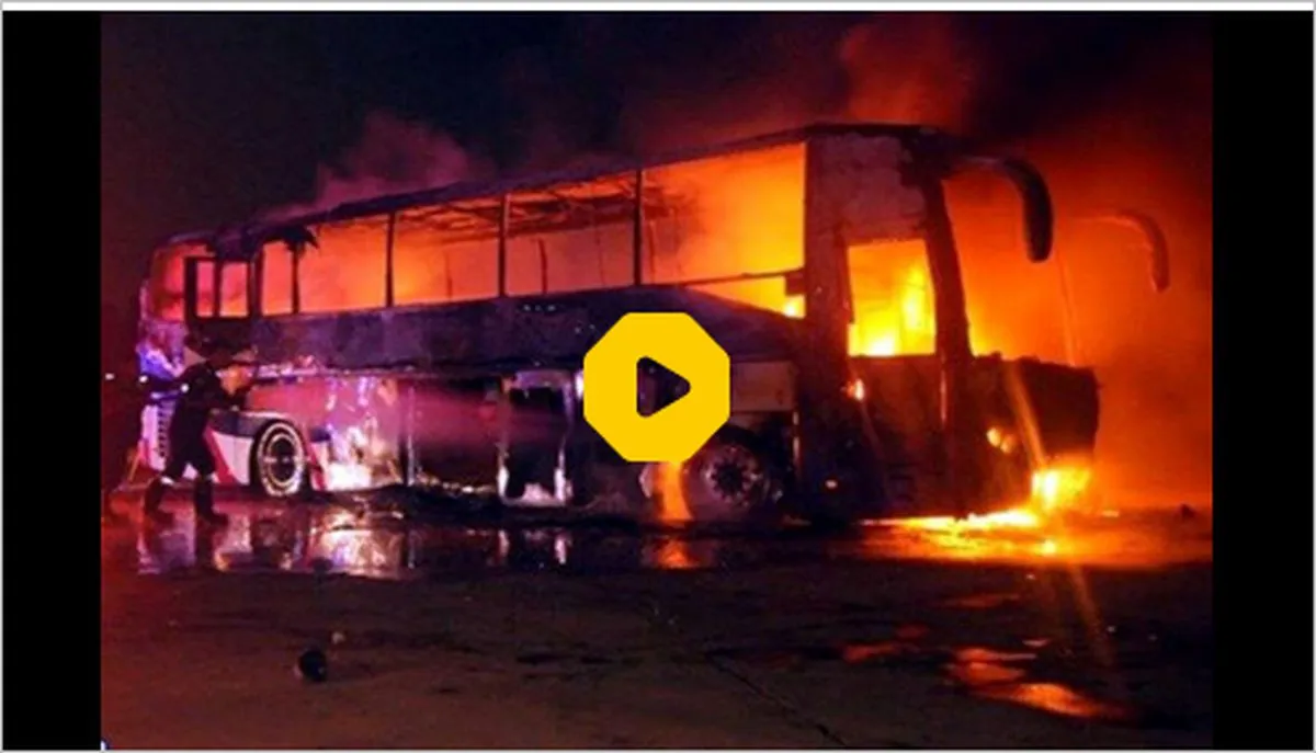 ببینید: لحظه آتش‌سوزی و انفجار عجیب یک اتوبوس وسط شهر!