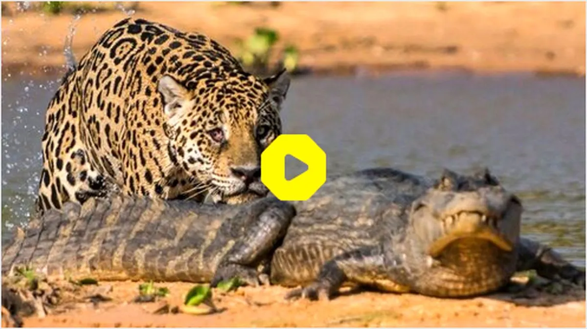 یک تمساح که در حال استراحت بود، با حمله مرگبار یک پلنگ، غافلگیر شد.