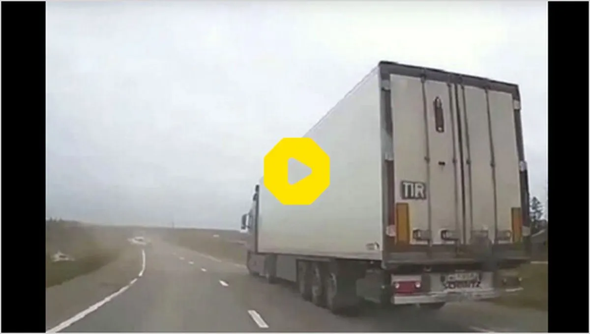 در این سانحه یک خودرو با سرعت بالا در حال لای‌کشیدن است که متاسفانه توسط کامیون زیر گرفته می‌شود.