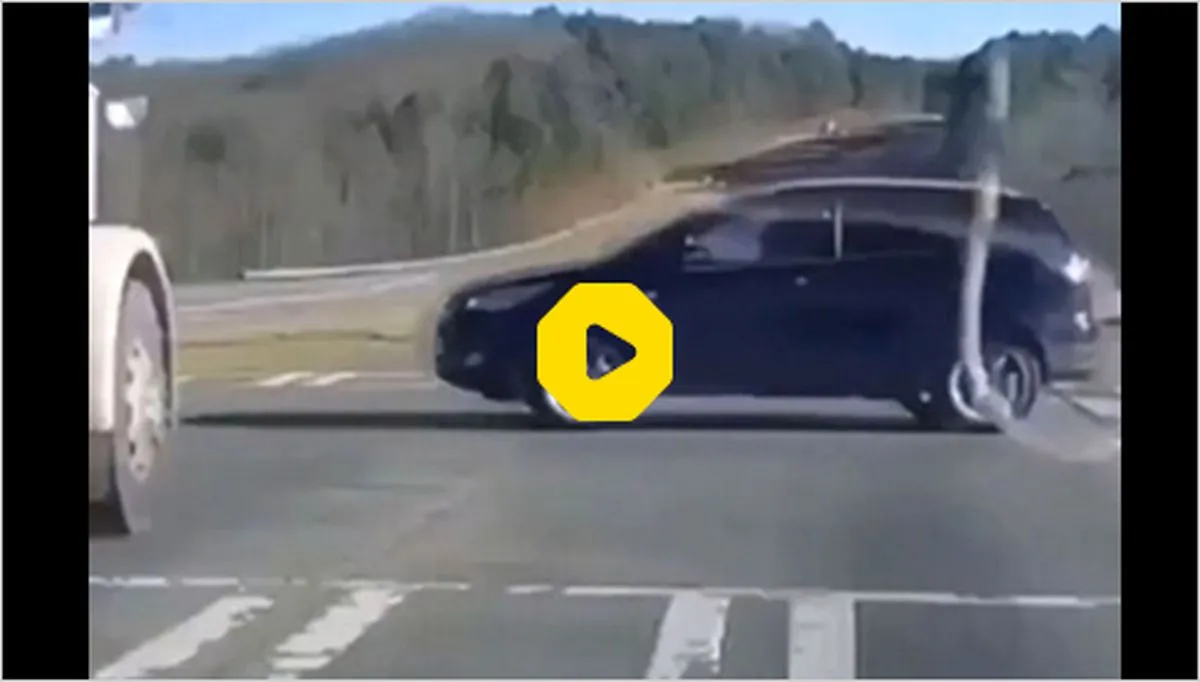 ببینید: لحظه شاخ به شاخ شدن کامیون و سواری در جاده‌!