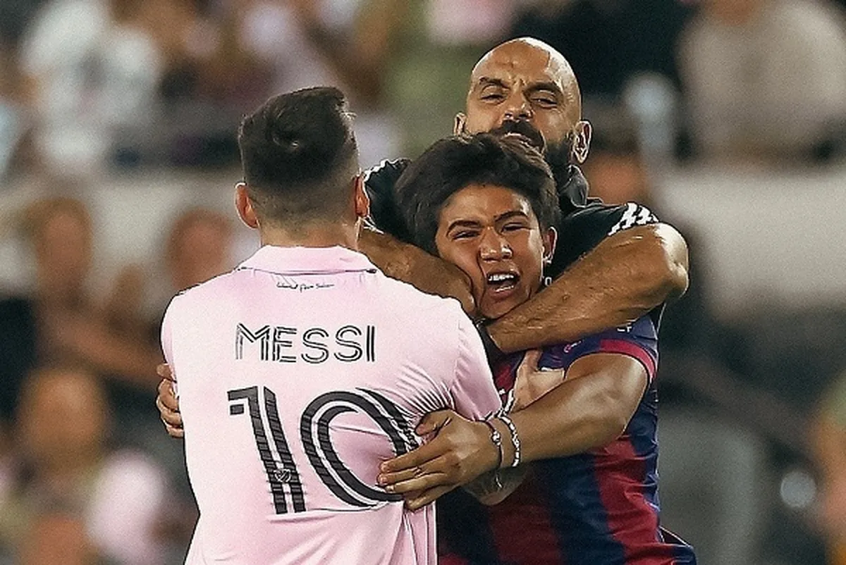 در نیمه دوم دیدار اینتر میامی و لس آنجلس که با پیروزی یاران مسی (۳-۱) به پایان رسید، یکی از هواداران در حالی که لباس تیم بارسلونا را به تن کرده بود وارد زمین شد و به سمت مسی دوید، اما محافظ مسی سریعتر از مسئولان امنیتی بود و با تمام سرعت برای توقف او هجوم برد.