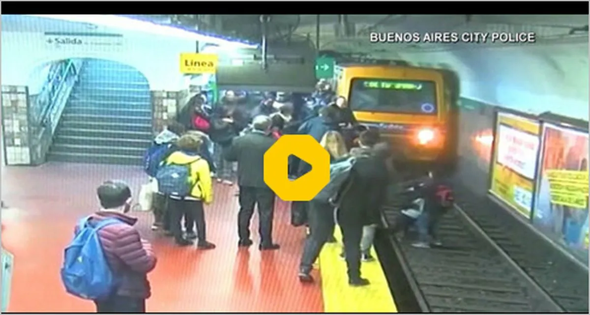 لحظه بیهوش شدن زنی در مسیر قطار که توسط مسافران نجات یافت.