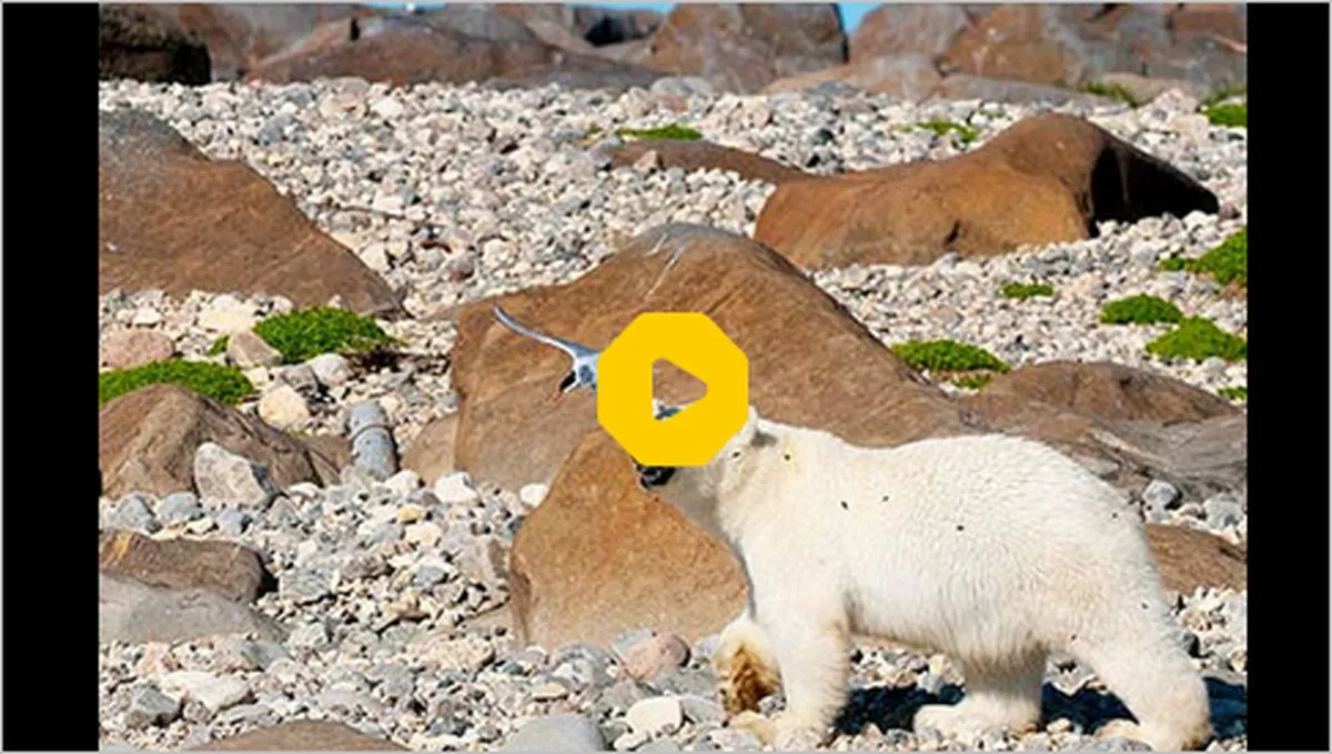 ببینید | تصاویری از بالا رفتن خرس قطبی از صخره‌ها برای شکار
