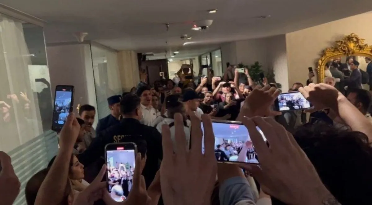 در بدو ورود اتوبوس النصر به هتل و جابجایی رونالدو به سمت اتاقش اتفاقات عجیبی افتاد و در حالی که این بازیکن از سوی چند نفر از کادر النصر محافظت میشد، به سختی وارد آسانسور شد و با زدن دکمه از دست افرادی که با موبایل به دنبالش بودند، فرار کرد.