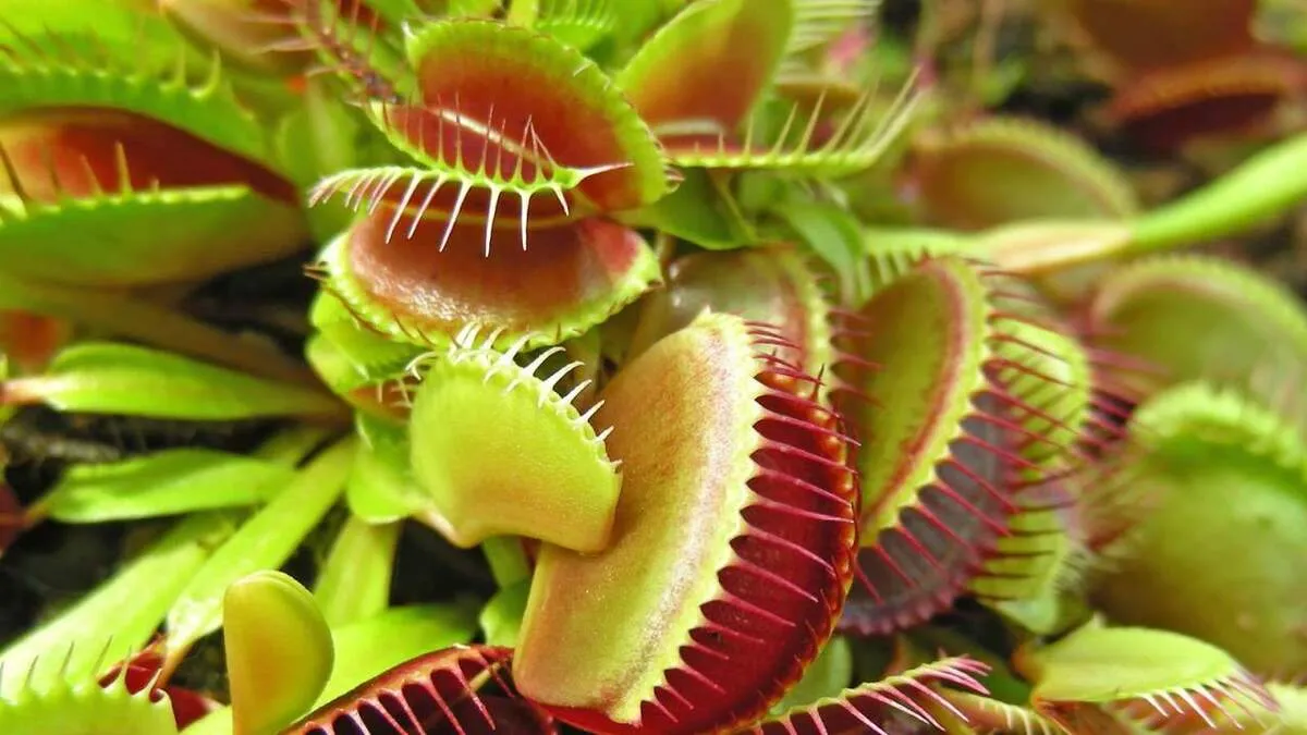 یک گیاه گوشتخوار پس از اینکه یک تکه سوسیس را خورد از بین رفت.