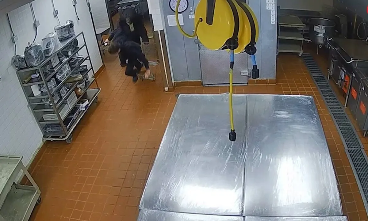 فیلم منتشر شده خرس را نشان میدهد که در اطراف آشپزخانه پرسه میزند. چند ثانیه بعد، نگهبان وارد قاب میشود و در حالی که به سمت خرس میرود. او از پشت به خرس نزدیک میشود، اما ناگهان خرس بازگشته و او را به زمین میزند.
