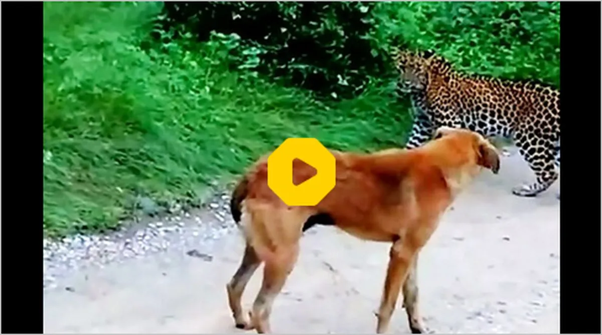 ببینید | حمله سگ مادر به یک پلنگ برای نجات فرزندش !