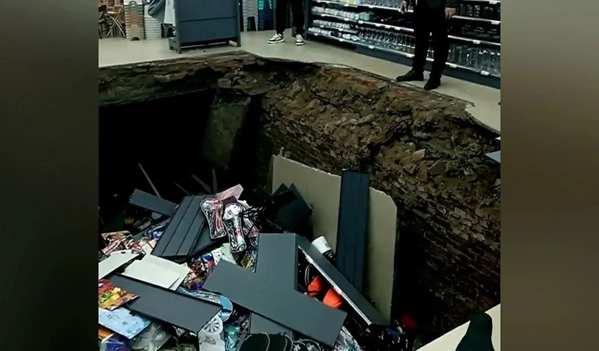 بسیاری از قفسهها اجناس آن به داخل حفره ریخت. شاهدان میگویند یک مادر و فرزندش در این حادثه آسیب دیدهاند.