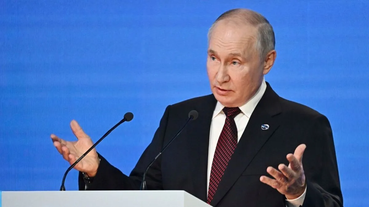 ولادیمیر پوتین رئیس جمهور روسیه در همایشی جوک بی مزه و لوس تعریف می‌کند.