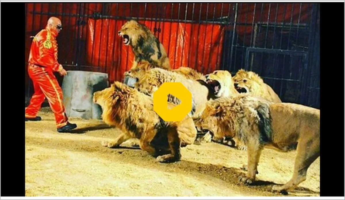 لحظه هولناک شورش و حمله شیرهای سیرک به مربیان را ببینید خوشبختانه این حمله مهار شد.