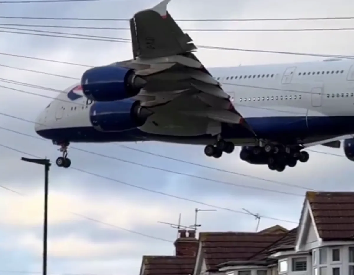 اینجا لندن است، تصاویر لحظه عبور ترسناک ایرباس ۳۸۰ از بالای منازل مسکونی را ببینید.
