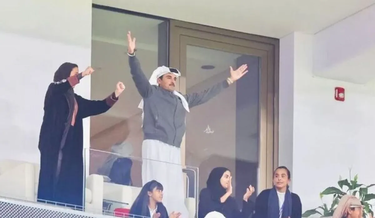 امیر قطر شیخ تمیم بن حمد بن خلیفه آلثانی را پس از پیروزی تیمش برابر تیم ملی ایران و راهیابی به فینال این رقابتها به شادی پرداخت.