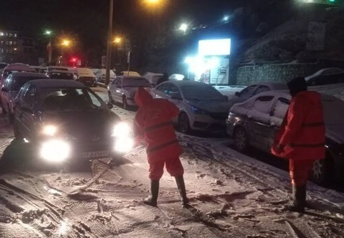 ویدیو | ترافیک شدید در تهران در پی بارش برف