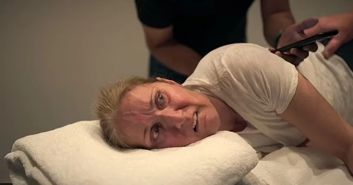 به گزارش روزیاتو، دیون که اضطراب و ناراحتی در چهره اش دیده میشود، اسپری بینی را که معمولاً برای درمان اثرات تشنجهای خوشهای در مبتلایان به SPS استفاده میشود، دریافت میکند.