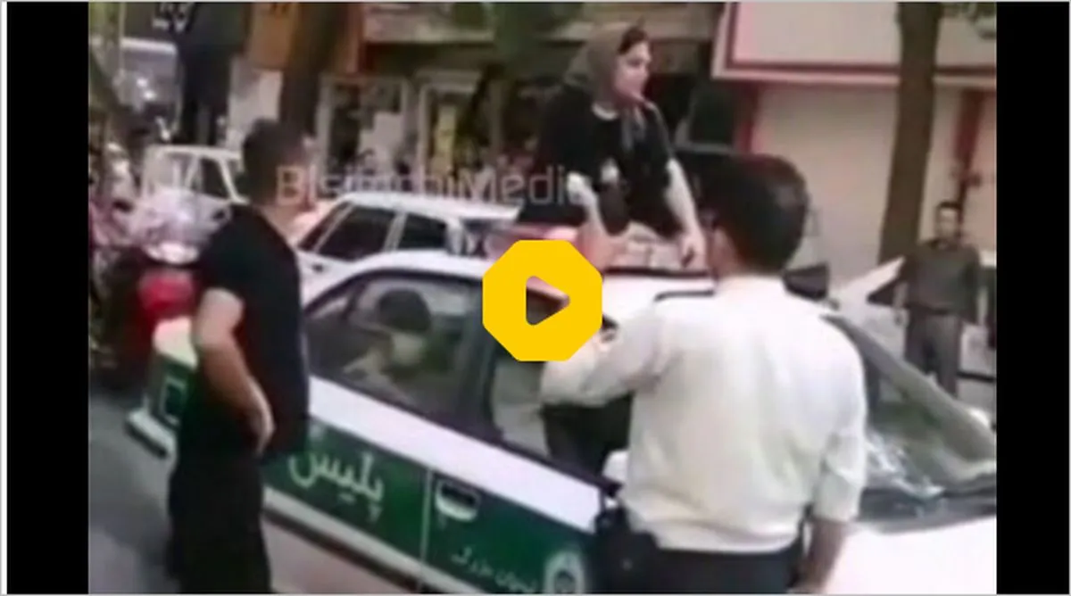 ببینید: ویدیوی زنی که بالای سقف ماشین کلانتری رفت!