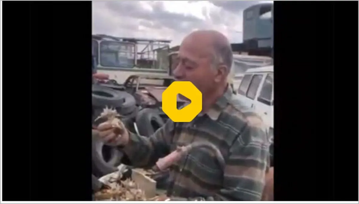 ویدئویی در شبکه‌های اجتماعی دست به دست می‌شود که نشان می دهد مردی میانسال در حرکتی عجیب، اقدام به خوردن خار می‌کند.