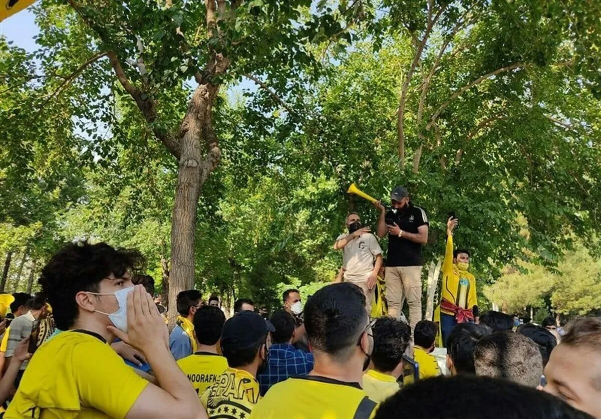 تجمع هواداران سپاهان در مقابل هتل محل اقامت این تیم و تشویق زردپوشان