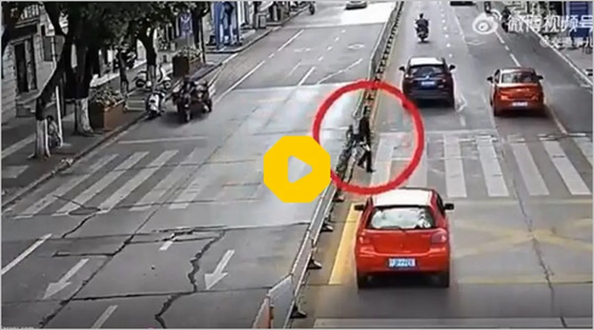 لحظه برخورد عجیب یک خودرو با دو عابری که قصد عبور از خط عابر پیاده را داشتند ببینید.