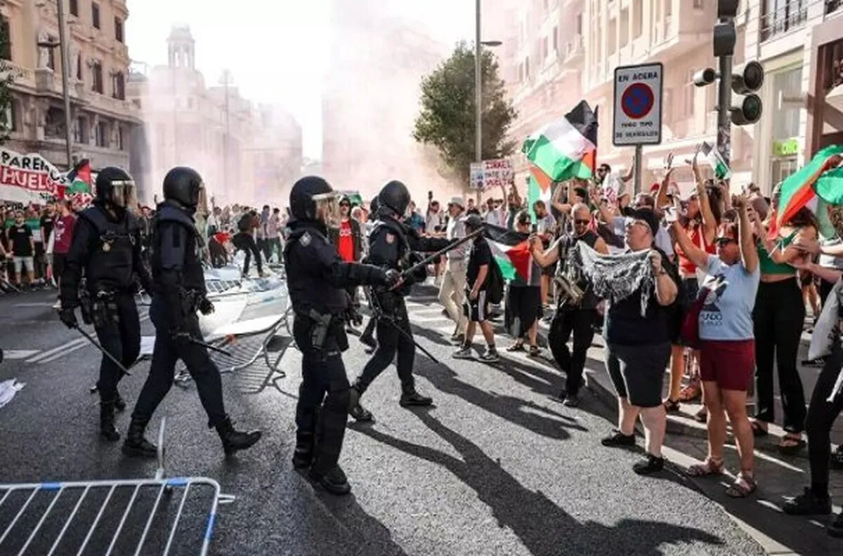 تصاویر توقف مسابقات دوچرخه‌سواری در اسپانیا در اعتراض به حضور صهیونیست‌ها را ببینید.