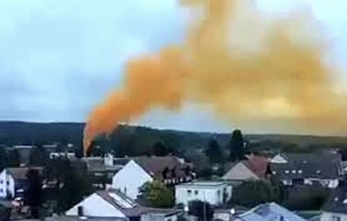 در پی واکنش شیمیایی در مخزن ۶۰۰۰ لیتری اسید نیتریک در کارخانه‌ای در شهر مایناشاف آلمان، گاز نشت کرده و ابر نارنجی‌رنگی در آسمان پدیدار شد.
