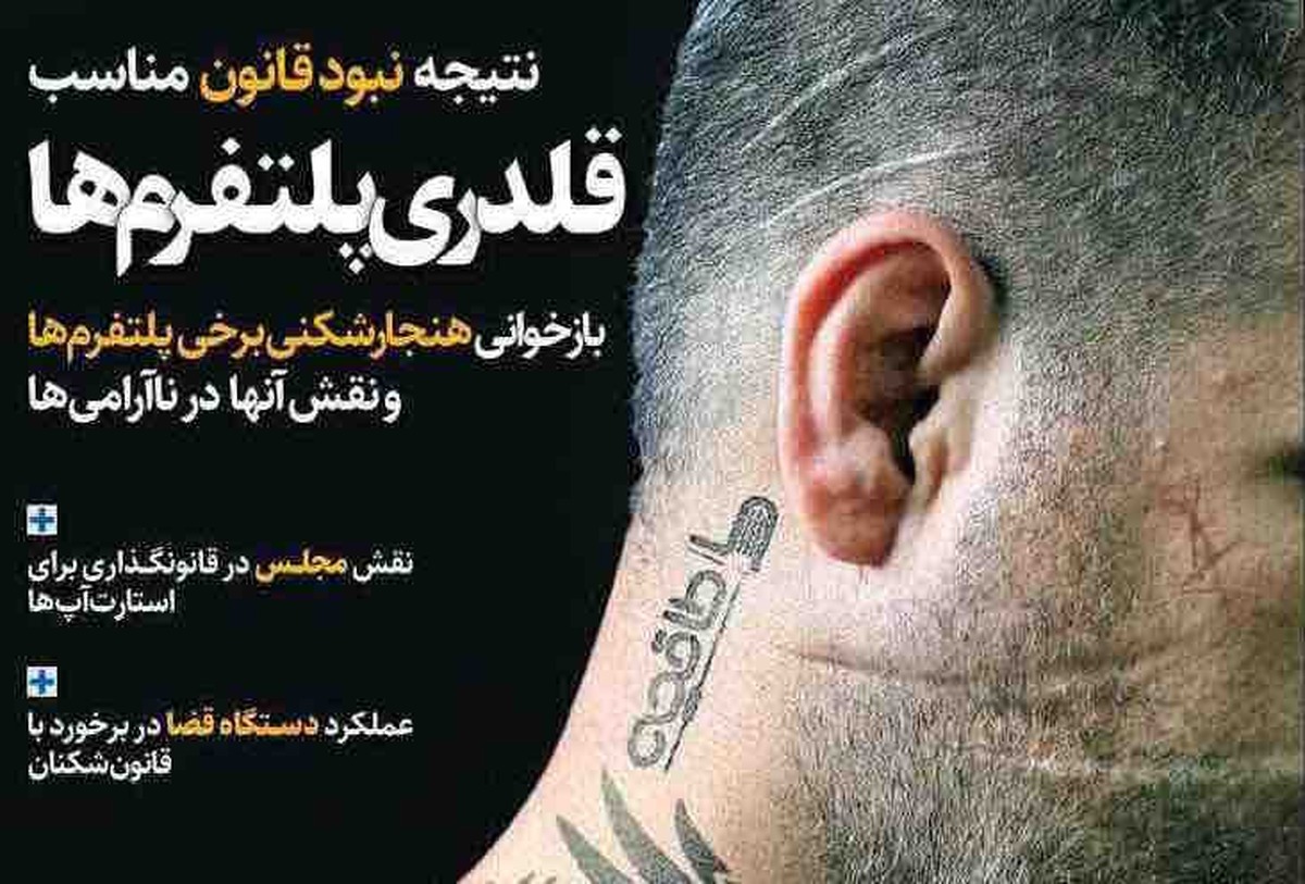 صفحه یک روزنامه همشهری امروز تصویری شروری را نشان میدهد که لوگوی یکی از استارتاپهای کشور را روی گردنش هک کرده است.